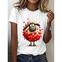 T shirt Tee Femme Noir Graphic Chat Imprimer Manches Courtes du quotidien Fin de semaine basique Col V Normal Standard Chat 3D S |