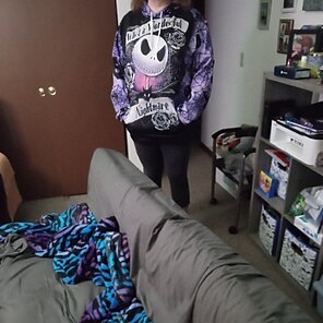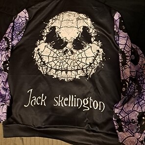 Ce sweat-shirt était censé être un cadeau de Noël pour ma fille, qui habite à 80 km, mais je ne lai reçu que le 28. Je pense que Shell laime parce quelle est une accro de Nightmare-before-Christmas, bien que le matériel soit plutôt funky. Jespère que ça conviendra.
