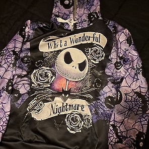 This sweatshirt was supposed to be a Christmas present for my daughter, who lives 50 miles away, but I didnt receive it until the 28th. I think shell like it because shes a Nightmare-before-Christmas-aholic, although the material is kind of funky. I hope it fits.