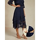 Femmes Élégant Occasionnel Midi Taille Moyenne Jupes Fleuri Dentelle A Volants Ourlet irrégulier Micro-Élastique Date Décontracté Quotidien bleu marine Printemps, Automne, Hiver, Été Polyester |