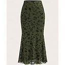 Femmes Occasionnel Midi Taille Moyenne Jupes Floral Imprimé Non Elastique Quotidien Rue Noir Vert foncé Printemps Spandex Polyester |