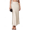 Femmes Occasionnel Maxi Taille Basse Jupes Uni Fendu Micro-Élastique Vacances Rue Noir Rouge Marron clair Marron Été Polyester |