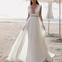 Mariage Plage Robes de Mariage Boho Décolleté Ouvert à l'Arrière A-Ligne Col en V Manches Longues Traîne Courte Dentelle Robes de Mariée Avec Couleur Unie |