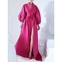 Robe de soirée élégante en satin A-line robe formelle asymétrique manches longues col montant poche avec nœud(s) robe de poche |