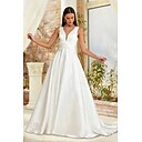 Salle Formel Robes de mariée Ligne A Col en V Sans manches Traîne Balayage Satin Robes de mariée Avec Froncé Couleur Unie |