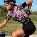 Femmes Maillot de cyclisme À Motifs Motif Floral Fleur Manche Courte Cyclisme Maillot Top avec 3 poches arrière VTT Vélo tout terrain Cyclisme sur route Séchage Rapide Design Anatomique Résistant aux |