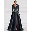 Robe de soirée florale en A brodée robe élégante mariage formel longueur de sol à manches demi-col en satin avec fente |