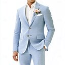 Pour des hommes Occasionnel Mariage à la plage Costumes en lin Revers Cranté Bleu Ciel Mode Fête Couleur Unie Coupe Standard 2 pièces Simple Boutonnage Deux Boutons |