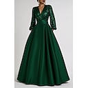 Ligne A Longueur au sol Robe de Soirée Tenue de soirée Élégant Scintillant Soyeux manche longue Col en V Formel Mariage Poche Satin Pailleté avec Paillettes Plis Poche |