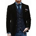 veste blazer en velours pour homme, col cranté, blazer classique de couleur unie, noir, marron, bleu foncé, coupe ajustée, boutonnage simple, deux boutons |