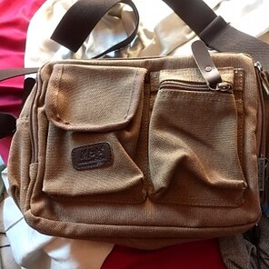 Sac Homme absolument superbe ! Je cherchais THE ONE depuis des lustres. Je les ai vus sur Lightinthebox, jai lu les critiques, jai aimé ce que les autres avaient dit et jen ai commandé un. Jai opté pour la couleur Kharki. Le sac est arrivé et cétait comme dit, parfait. Juste la bonne taille, plein de poches, un excellent choix de couleurs et ça a lair cool comme une fourchette ! Voici quelques photos que jai prises pour montrer à mon pote.
