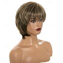 Court brun foncé mélangé blond mettre en évidence perruques coupe lutin avec une frange perruques synthétiques en couches pour les femmes perruques de remplacement de cheveux naturels |