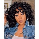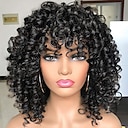 perruques noires pour les femmes les plus jolies perruques afro bouclées avec une frange pour les femmes d'apparence naturelle perruque noire crépue bouclée pour un usage quotidien (1b noir naturel)) |
