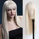 towarm longue ligne droite platine blonde avec une frange synthétique aucune perruque avant de lacet pour les femmes naturel longue ligne droite partie médiane # 60 couleur fait à la machine cosplay |