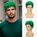 Parruques Vertes Perruque Synthétique Bouclée avec Frange Perruque Fabriquée à la Machine Courte Cheveux Synthétiques Verts Hommes Fête Naturelle Verte |