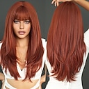 perruque longue et droite auburn avec frange 26 pouces perruques de cheveux synthétiques orange roux en couches pour femmes perruque naturelle cuivrée rouge résistante à la chaleur pour une |