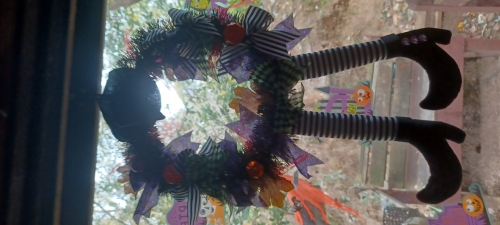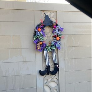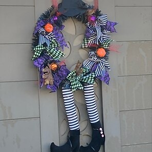 Celui-ci est déjà sur la porte dentrée et a lair très mignon. Elle est arrivée un peu déformée, mais comme la couronne est à base de fil, elle était facile à remodeler. Je vais ajouter des guirlandes lumineuses en fil de cuivre à piles pour ajouter à lambiance.