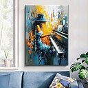 Peinture à l'huile sur toile, faite à la main, représentant une jeune fille jouant du piano. Décoration murale abstraite. Idéale pour la maison ou une salle de musique. Toile tendue sur châssis ou |