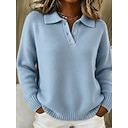 Femmes Pull Occasionnel Col de chemise Tricoté manche longue Hauts Réguliers Tricoter Quotidien Bleu Automne Hiver |