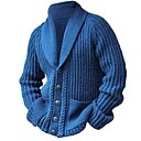homme cardigan pull gros cardigan pull court câble régulier boutonné uni col châle vintage échauffements décontracté usage quotidien vêtements vêtements manches raglan automne hiver bleu m l xl