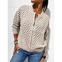 Femmes Pull Cardigan Élégant Mode Streetwear Couleur Unie Col en V Évider Fermeture éclair Tricoté manche longue Hauts Réguliers Tricoter Extérieur Quotidien Week-end Noir Blanche Printemps Automne |