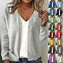 Femmes Pull Cardigan Mode Streetwear Quotidien Couleur Unie Côtelé Col en V Tricoté manche longue Hauts Réguliers Tricoter Fête Sortir Week-end Noir Blanche Automne Hiver |