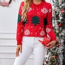 Femmes Pull de Noël Pull Fair Isle Pull Élégant Mode Streetwear Couleur Unie Fleuri Graphique Col ras du cou Tricoté Imprimé manche longue Hauts Réguliers Tricoter Noël Extérieur Quotidien Rouge |