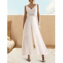 Combinaisons élégantes Robe Invité de mariage été longueur cheville sans manches en V en chiffon dos échelonné avec plis cristaux |