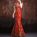 Robe de soirée sirène Robe vintage Invité de mariage Formelle Soirée Longueur de sol Manches courtes Col haut Satin avec broderie de sequins robe pour impressionner |