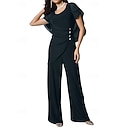 Jumpsuit/costume-pantalon robe mère de la mariée élégante simple minimaliste encolure dégagée longueur de sol en chiffon à manches courtes avec boutons en cristal |