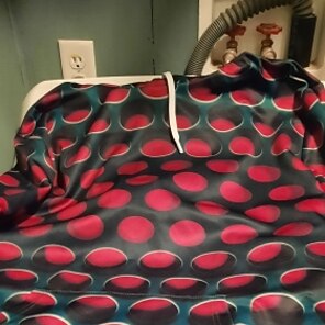Love the hoodie.  Depending on the picture online, the color is not as close to what I saw online as I thought it would be.  I ordered the purple dot, thinking it would be a deep purple, but this looks more like a raspberry color.  The shading color also has some green hues, which the online photo shows.  No washing instructions, but I washed in cool water and line dried.  It would be great to have ties that match the sweatshirt color instead of standard white.  If I was to reorder I would do the blue - as it looks more true to color throughout the hoodie.