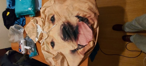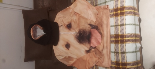 Très drôle et bon imprimé, mais attention, ça donne beaucoup de taille sweat pour la mi-temps, au dos limprimé est le même, très bonne qualité