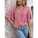 Femmes T-shirt A Volants Uni Mode Élégant Classique Demi Manches Col en V Hauts Réguliers Quotidien Sortir Week-end Noir Blanche Rose Claire bleu marine Chameau Été Printemps |