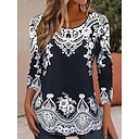 Femmes T-shirt Imprimé Fleuri Graphique Paisley Bohème ancien Élégant Manche Courte Col ras du cou Col en V Hauts Longs Quotidien Sortir Week-end Bleu Noir Vert Claire Violet Vert Été Printemps |