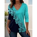 t-shirt femme basique imprimé floral manches courtes hauts réguliers col en V décontracté vacances week-end bleu violet vert |