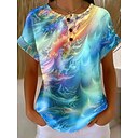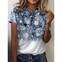 Femmes T-shirt Imprimé Fleuri Graphique Plantes ancien Élégant Classique Manche Courte Col ras du cou Col rond Hauts Réguliers Quotidien blanc / bleu Rose Claire Vert Été Printemps Automne |