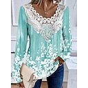 Blouse femme tunique dentelle splicing col en V à manches longues florale dentelle patchwork imprimé tops réguliers col rond décontracté violet vert kaki printemps et automne préautomne |