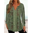 Tunique Femme Chemise Henley Blouse Tunique Basique Florale Imprimé Boutons Manches Longues Hauts Réguliers Col Rond Casual Vacances Bleu Fuchsia Brun Kaki Printemps Automne Préautomne |