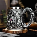 Chope à bière dragon médiévale, mug cadeau Oktoberfest, tasse à café en acier inoxydable gaufré 3D, chope à thé rétro pour homme, chope à eau très esthétique |