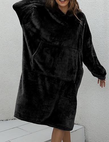 Femmes Pyjamas Loungewear Mode Occasionnel Sweat à capuche couverture portable Couleur Unie Avec Poches Robes Vacances Maison manche longue Col ras du cou Noir Marron Bleu de minuit Bleu clair