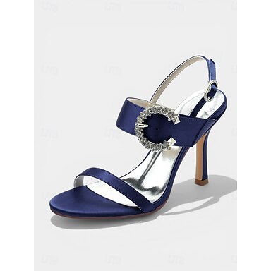 Sandales à talons hauts en satin bleu marine pour femme, ornées d'une boucle - élégantes chaussures de cocktail avec détails en strass