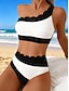 Maillot de bain bi-pièce pour femmes bikini avec armature briefs colorblock slim dos nu vacances plage color block à encolure asymétrique sans manches