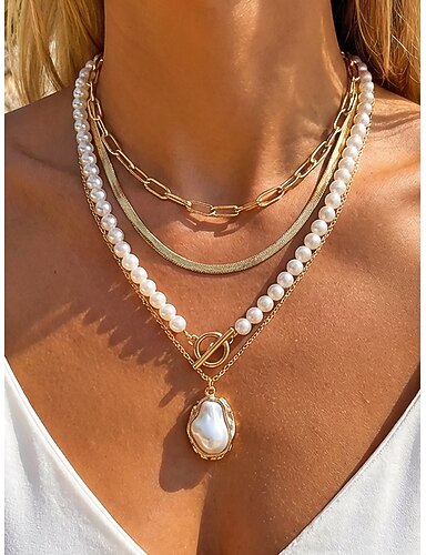 Collier pendentif Perle Femmes Élégant Artistique Franges Superposé Mariage Gouttes Colliers Tendance Pour Mariage Soirée Quotidien