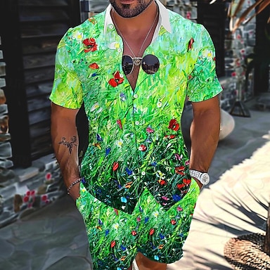 Homme Fleuri Ensembles de chemises Ensemble Chemise Chemise hawaïenne Manche Courte Col Rabattu Hawaïen Confortable Rue Occasionnel Hawaïen Imprimé Été Printemps Printemps & Été Vert