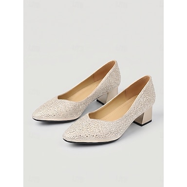 Escarpins à talons carrés ornés de cristaux pour femmes, chaussures habillées élégantes à bout fermé pour la mère de la mariée, mariages en plein air &événements formels