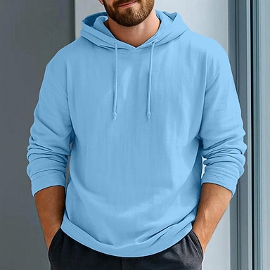 Homme Sweat à capuche T-shirt en lin manche longue À capuche Été Printemps Couleur Unie Uni ancien Bohème Occasionnel Bord écru Vacances Rue Occasionnel Blanche Rose Claire Rouge Bordeaux T-shirt