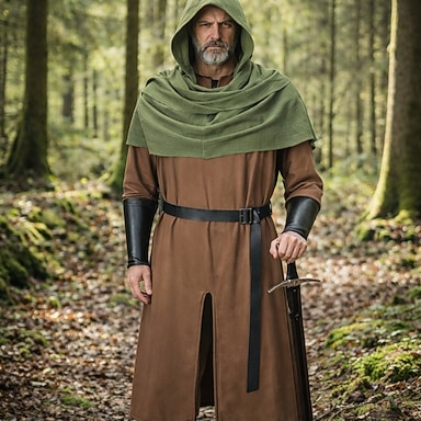 Set Rétro Vintage Médiéval Renaissance Accessoires Châles Tunique avec accessoires Manches longues Viking Ranger Déguisement Homme Halloween Carnaval Mascarade Foire de la Renaissance Soirée à thème