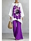 Femmes Ensembles de Pantalons manche longue Col rond Fleuri Graphique Imprimé Mode Streetwear Occasionnel Quotidien Extérieur Bleu Rose Claire Rouge Printemps & Été Coupe Ample