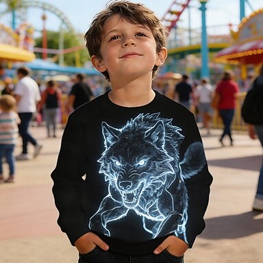 Garçons 3D Graphique Animal Loup Sweat-shirt Pull manche longue Impression 3D Printemps Automne Actif Mode Streetwear Enfants 4-12 ans Col Rond Occasionnel Quotidien Extérieur Coupe régulière