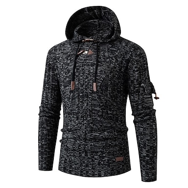 Homme Pull A côtes Tricoter Normal Cordon Classique Plein Capuche Moderne contemporain Travail Usage quotidien Vêtement Tenue Hiver Noir Beige M L XL